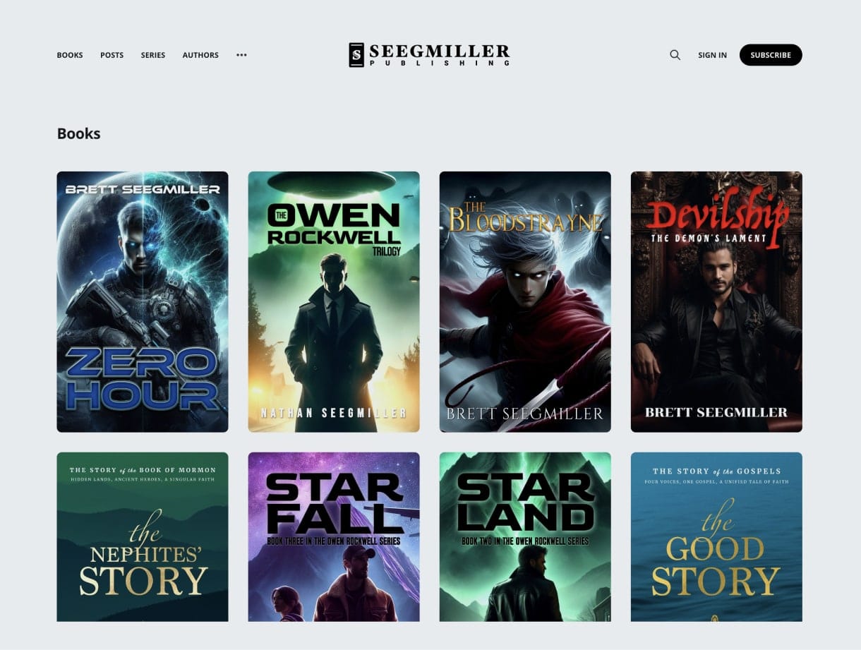 SeegmillerPublishing.com currently showcases my books and short stories alongside Nate’s alien invasion series, The Owen Rockwell Series. It’s incredibly exciting to see all of our books together in one place, and we hope to expand the collection even further this year.